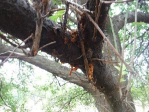 - 幼虫 フラスが発生し、カミキリが侵入したと思われる穴に薬剤を注入して殺虫を行う。または、針金等で刺殺する。